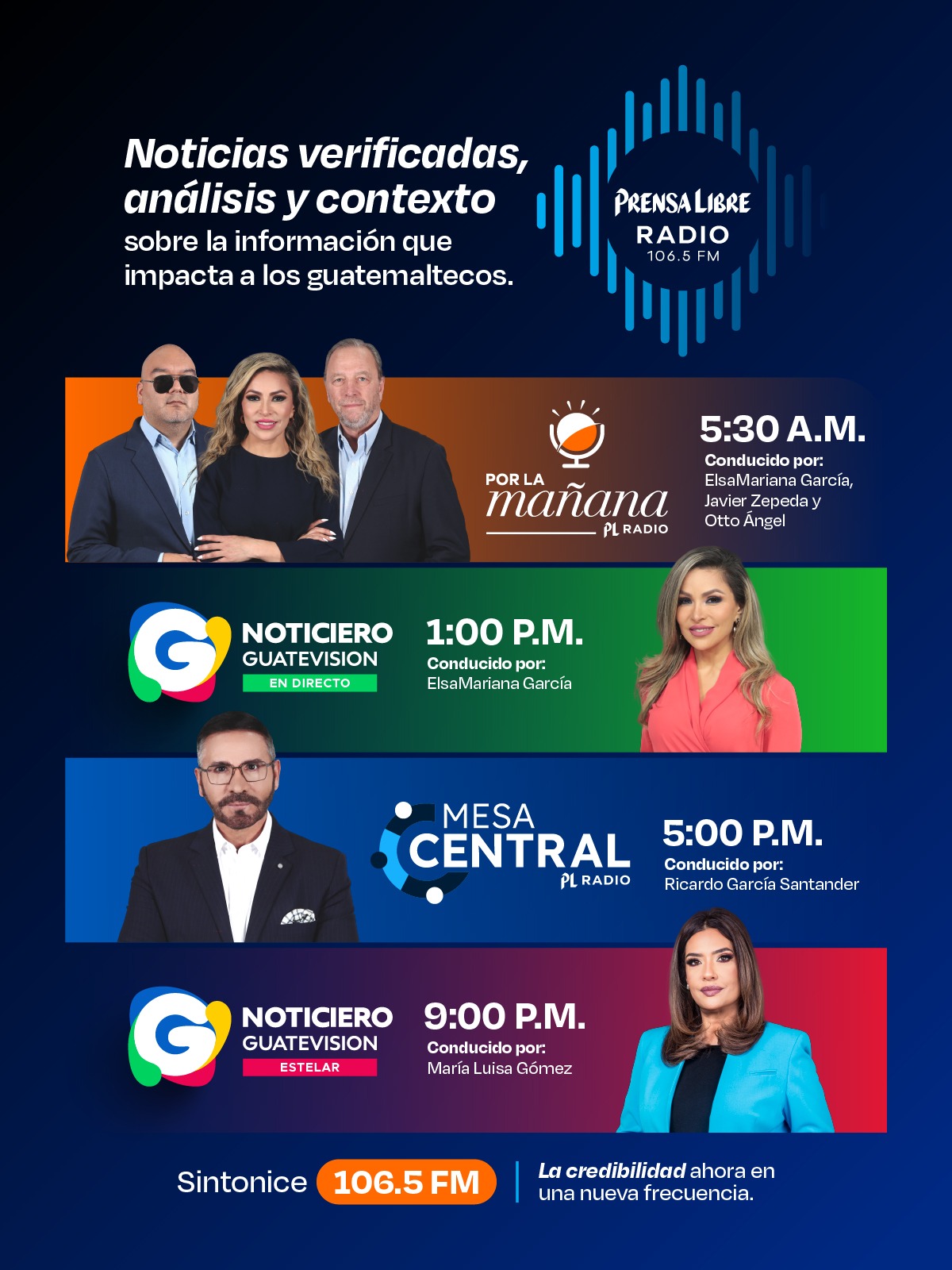 Los ciudadanos guatemaltecos ahora cuentan con una nueva alternativa para mantenerse informados, sintonizando en el 106.5 FM. También se puede acceder a través de teléfonos móviles y un reproductor que aparece al ingresar al sitio web, ofreciendo una programación que incluye música, noticias y espacios de debate conducidos por periodistas e invitados. Este es el nuevo integrante de la familia de Guatevisión.