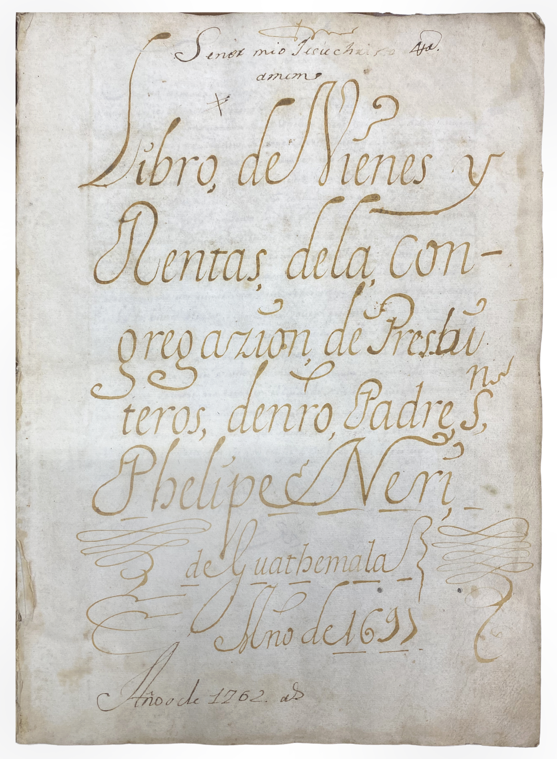 En 1697, se encuentra un libro de inventarios perteneciente a la Congregación del Oratorio de San Felipe Neri, ubicado en Santiago de Guatemala, que incluye la representación de Jesús Nazareno de las Tres Potencias. (Foto: cortesía de Alejandro Cóbar)