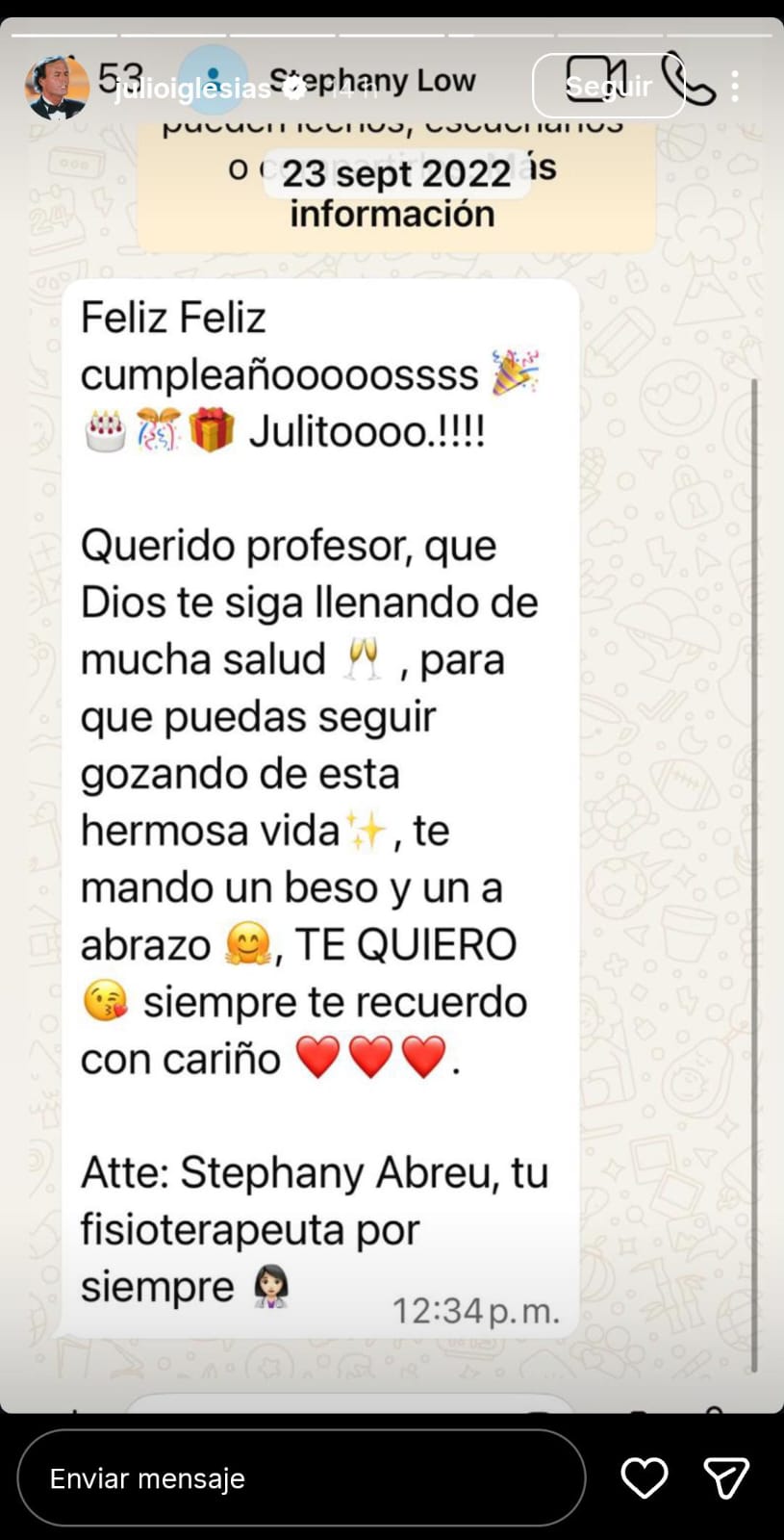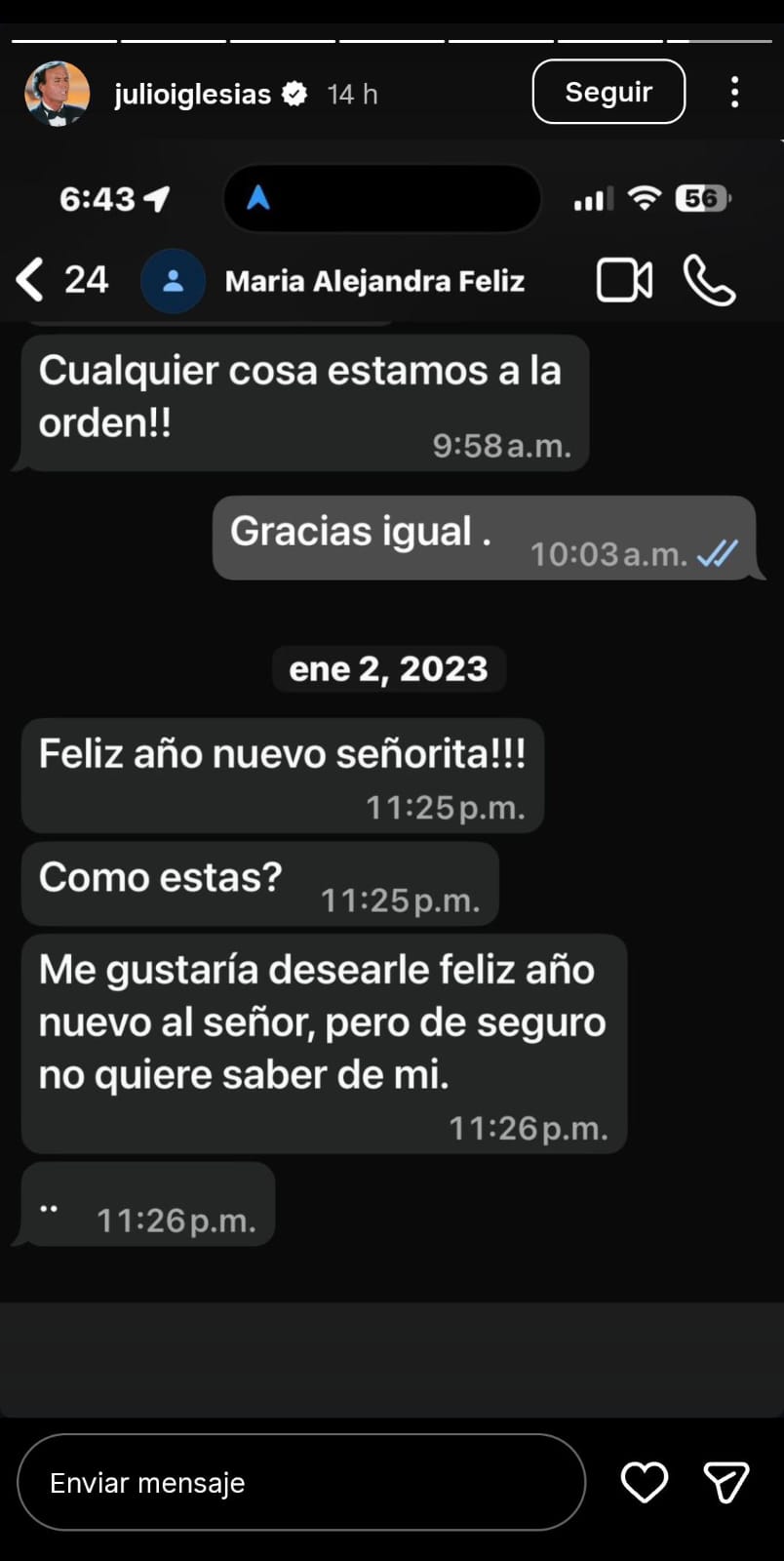 Captura de pantalla de las pruebas presentadas por Julio Iglesias sobre supuestas conversaciones con sus denunciantes. (Imagen: captura de pantalla de Instagram de Julio Iglesias)