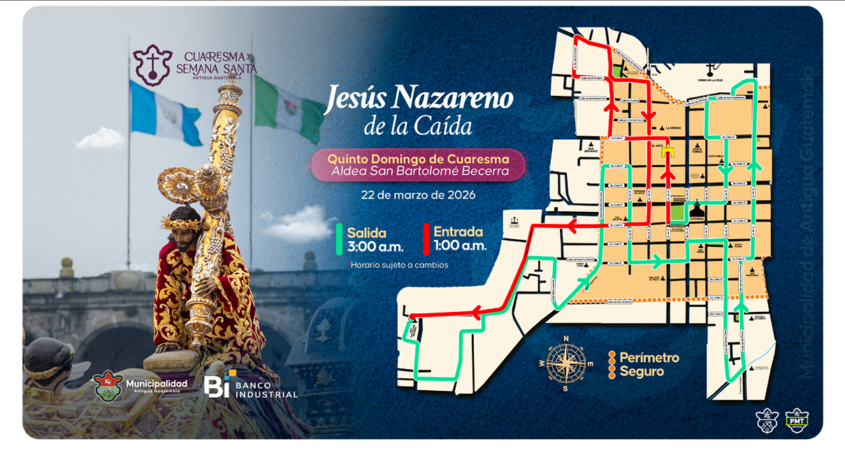Como parte de la estrategia de movilidad en Antigua Guatemala, se implementó un plan de perímetro peatonal que permitirá a las personas disfrutar del cortejo sin interrupciones por vehículos. Según la información de la comuna, así se ha establecido este perímetro.