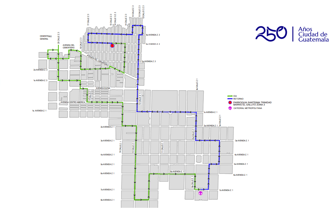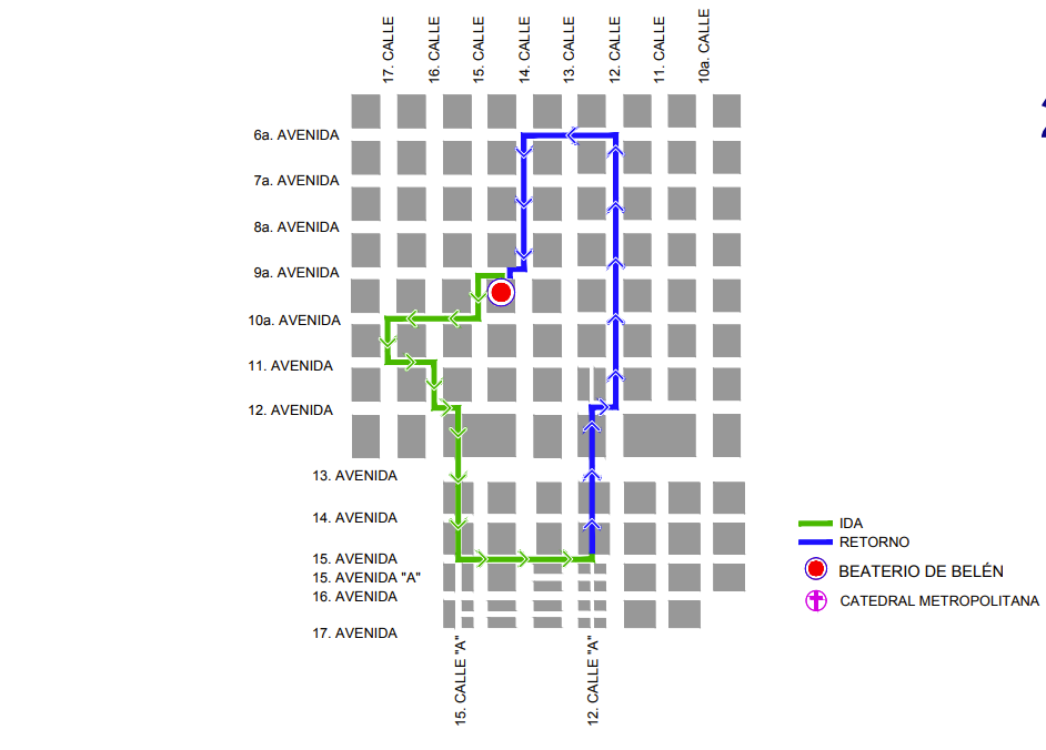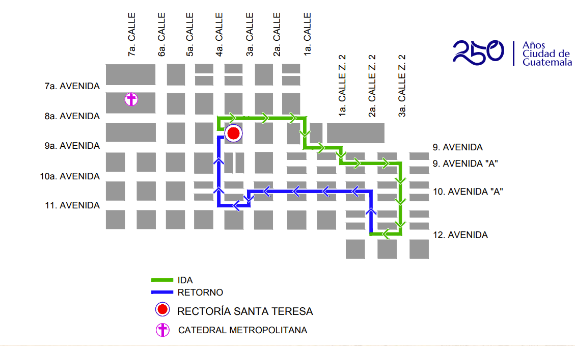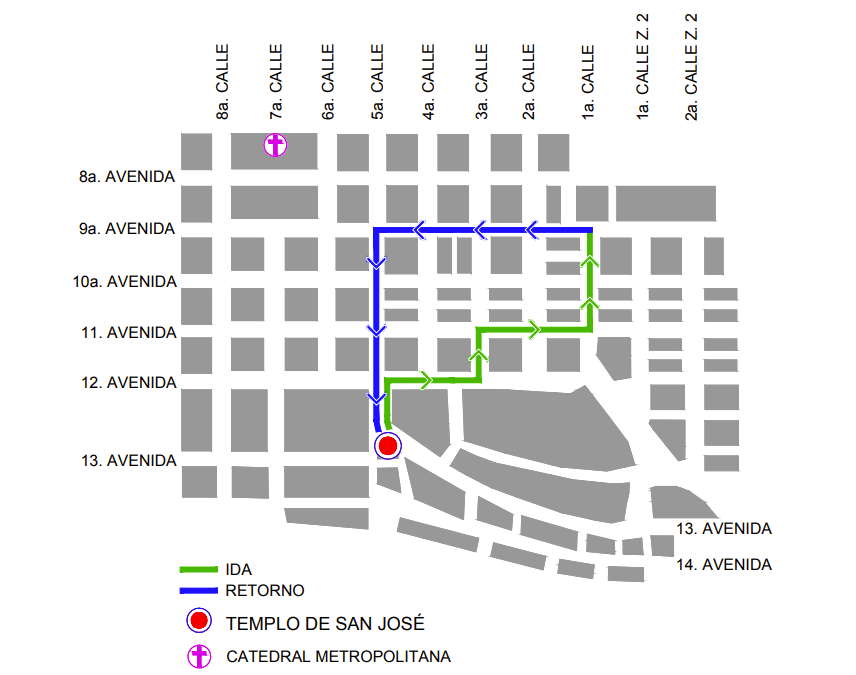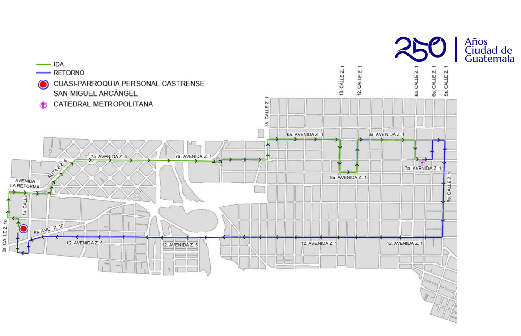 Recorrido procesional del cuarto fin de semana de Cuaresma 2026. (Foto: Captura de pantalla / MuniGuate)