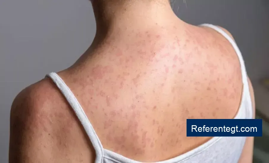 Días después, se desarrollan erupciones cutáneas que inician en la cara y el cuello, extendiéndose gradualmente al resto del cuerpo.